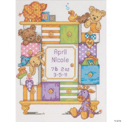 Dimensions counted cross stitch kit baby express birth record personalized baby gift, 14 count white aida, 12 x 9.