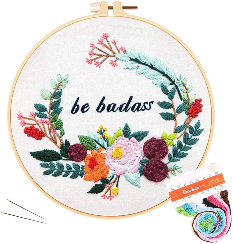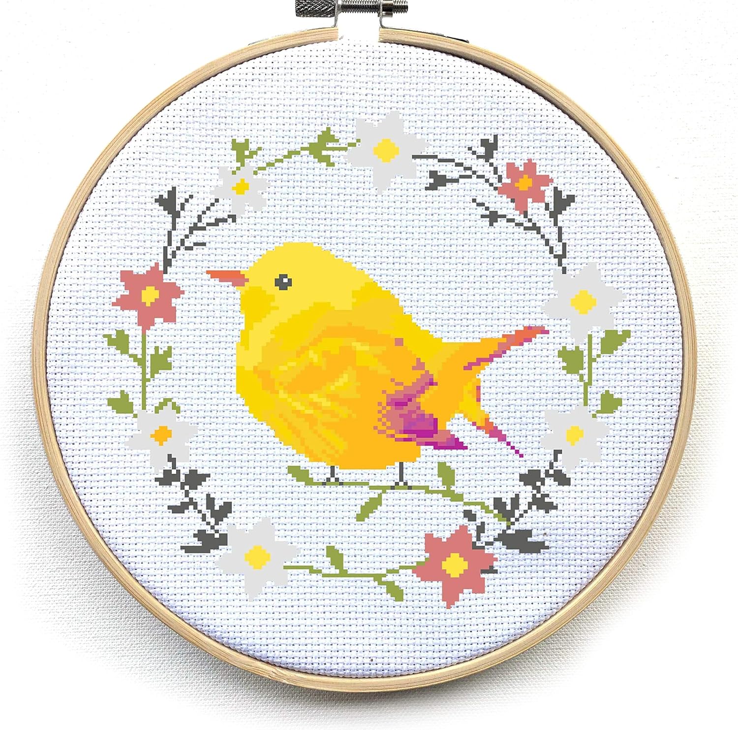 This set comes with 3 floral wreath cross stitch patterns including bee happy, i love you, and bird wreath.